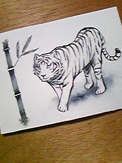 ちなみに、年賀状は…真面目にトラが2枚と、ふざけた創作イラストが1枚。