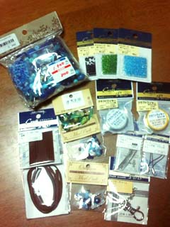 という訳で…ビーズ箱の中で品薄になってるビーズやらワイヤーやら、ピンやカン(輪っかの金具とか)等の金具類を買って。