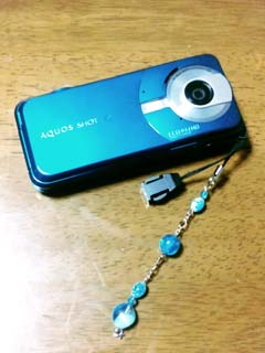 今日買って来たビーズで、ストラップを作った次第。